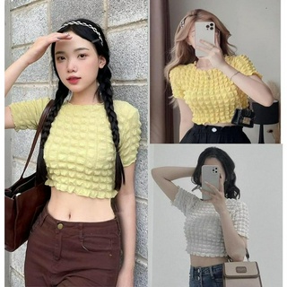 Áo Croptop Xốp Nữ Ngắn Tay nhiều màu Oversize, áo ôm body thời trang Áo kiểu nữ sành điệu
