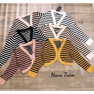 Áo khoác len nữ kẻ sọc tay dài dáng lửng