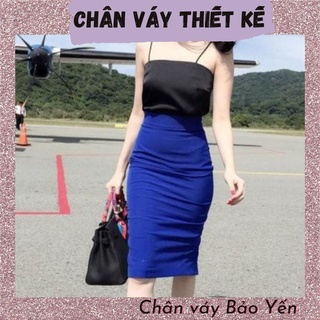 Chân váy bút chì xanh coban tới gối xẻ sau (sẵn size) - M25