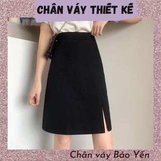 Chân váy chữ A màu đen dài 50cm xẻ trước( sẵn size) _ M33
