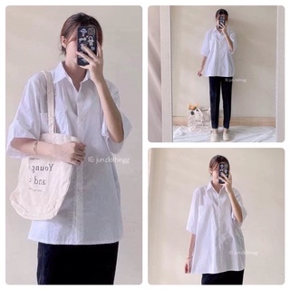 Áo sơ mi tay lỡ dáng rộng unisex freesize 38-65kg