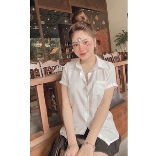 ÁO SƠ MI NỮ GU PURATO HIỀN HỒ NGẮN TAY CÓ TÚI HOTTREND MÀU TRẮNG, XANH NHẠT, XANH BẠC HÀ sơ mi trắng nữ