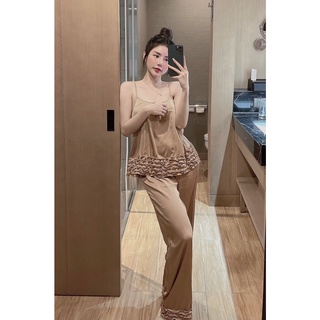 Set Đồ Bộ Áo 2 Dây & Quần Dài Bèo Nhún Lụa Latin Cực Mát Freesize