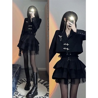 Bộ Áo Khoác + Chân Váy Xếp Ly Màu Đen Phong Cách Hoàng Gia Thời Trang Mùa Xuân 2022