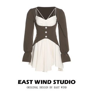 Set Áo Sơ Mi Tay Phồng Kèm Đầm Thiết Kế Hai Dây Phong Cách Retro Mẫu Mới 2022 Thời Trang Mùa Đông Cho Nữ