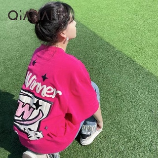 100% cotton short-sleeved T-shirt vintage American Retro women's summer new printed loose rose red top trendy nyti