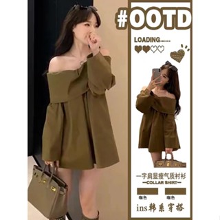 Niche Áo Sơ Mi Trễ Vai Dáng Rộng Phong Cách Xuân Thu Thanh Lịch Dễ Phối Đồ Cho Nữ