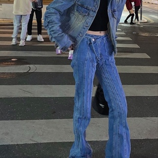 Quần Jean Ống Rộng Thẳng Đứng Thiết Kế Rách Phong Cách Đường Phố Mỹ Cao Cấp Dành Cho Bạn Nữ TH