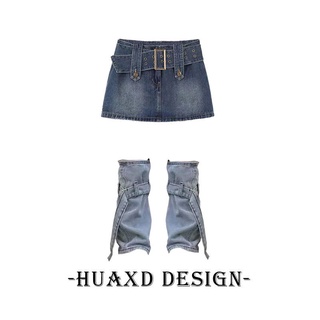 Set quần denim giả chân váy chất liệu co giãn phối thắt lưng + ống quần denim phong cách cổ điển cá tính dành cho nữ