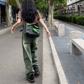 Quần jean ống rộng thêu họa tiết phong cách hip hop đường phố Mỹ thời trang mùa thu dành cho nữ