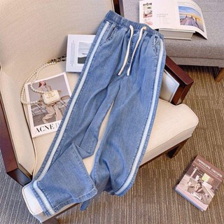 Tian Si Quần Jean Lụa Lạnh Mỏng Dáng Rộng Dây Rút Cỡ Lớn Mới Cho Nữ