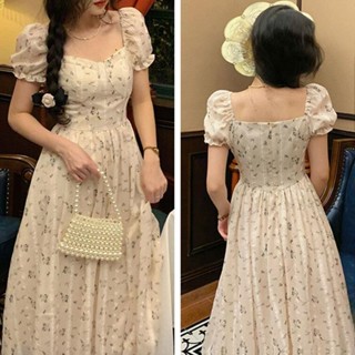 Đầm Công Chúa Ngắn Tay Cổ Vuông Phong Cách Pháp Mới
