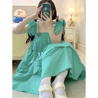 Đầm Yếm Dáng Rộng Tay Phồng Mềm Mại Phong Cách Nhật Bản Cho Nữ