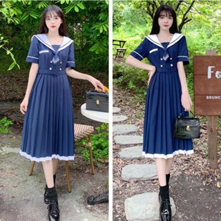 Đầm Dài Dáng Chữ a Cổ Thủy Thủ Thắt Eo Xếp Ly Cỡ Lớn Cho Nữ