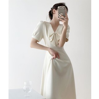 Đầm Trắng Tay Ngắn Cổ Chữ V Thiết Kế Mới Xinh Xắn Thời Trang Theo Phong Cách Pháp