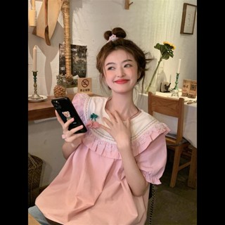 Áo Sơ Mi Tay Ngắn Phồng Phối Ren Dáng Rộng Thời Trang Mùa Hè Hàng Mới Dành Cho Bạn Nữ