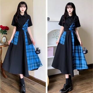 Đầm Sơ Mi Dáng Dài Kẻ Sọc Ca Rô Cột Dây Eo Dễ Thương Xinh Xắn Cho Nữ