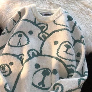 Áo Sweater Dệt Kim Cổ Rộng In Họa Tiết Kiểu Nhật Bản Thời Trang Thu Đông Cho Nữ