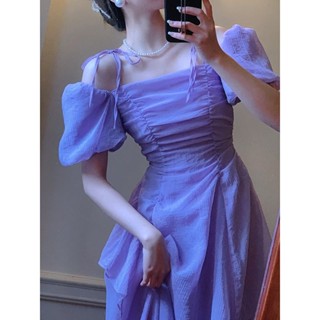 Đầm Dáng Dài Màu Tím Phong Cách Pháp Thời Trang Mới Cho Nữ