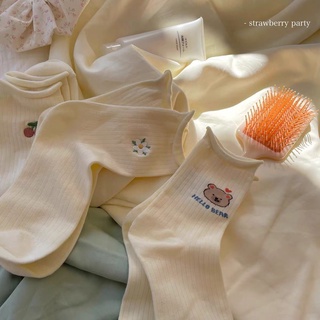 Vớ cotton Cổ Thấp Họa Tiết Sọc Ca Rô In Hình Gấu / Dâu Tây Dễ Thương Thời Trang Cho Nữ