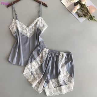 {Ffsd} Bộ Đồ Ngủ 2 Món Bằng Lụa Không Tay Phối Ren Quyến Rũ Giản Dị Dành Cho Nữ