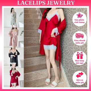 Váy ngủ sexy nữ gợi cảm LACELIPS chất ren voan cao cấp gồm váy 2 dây và áo choàng_Mã 219