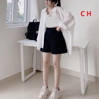 SÉT 3 món sơ mi TRẮNG kèm quần short kaki áo 2 DÂY- sét bộ đồ nữ dài tay quần sooc lưng cao ống rộng phong cách ulzzang