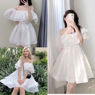 Váy trắng trễ vai bèo tầng V49M- Đầm babydoll công chúa xòe bồng bềnh chất voan 2 lớp phong cách ulzzang hàn quốc