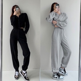 Set bộ nỉ thu đông kéo khóa 3 món UNISEX,sét Áo hoodie zip quần jogger form rộng màu xám đen phong cách ulzzang hàn quốc