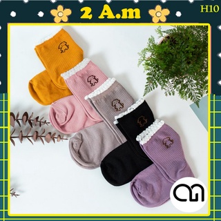 Tất Vớ Nữ Cổ Cao Thêu Họa Tiết Hình Gấu Dễ Thương Chất Liệu Cotton 2AM