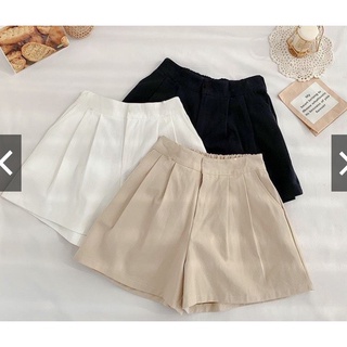 Quần đùi nữ ống rộng lưng cao mặc nhà CHAT vải đũi xuất Hàn Quốc DLQ11