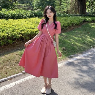 Đầm Dáng Chữ A Mềm Mại Chiết Eo Màu Sắc Ngọt Ngào Phong Cách Retro Thời Trang Mùa Hè Cho Nữ