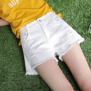 AMOI Quần Short Denim Lưng Cao Ống Rộng Rách Gối Thời Trang Cho Nữ
