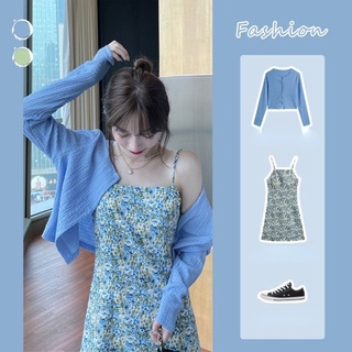 AMOI Bộ Đầm Hai Dây Dáng Rộng Họa Tiết Hoa Hợp Thời Trang Cho Nữ