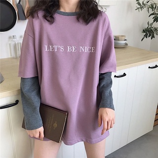 Áo Thun Tay Dài Giả Hai Lớp Dáng Rộng Phong Cách Hàn Quốc Thời Trang 2022 Cho Nữ