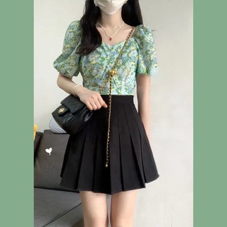Bộ Áo Tay Phồng + Chân Váy Xếp Ly In Họa Tiết Hoa Thời Trang Mùa Hè Xinh Xắn Cho Nữ
