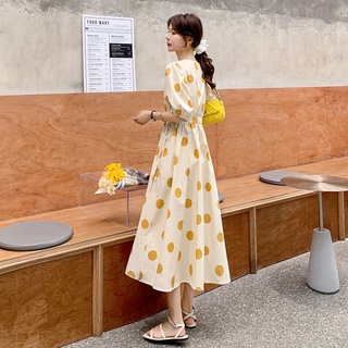 Đầm dài dáng chữ A họa tiết chấm bi thời trang Pháp 2022
