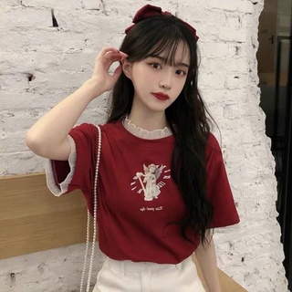 Áo Thun Tay Ngắn Phối Lưới Ren Giả Hai Lớp Phong Cách Hàn Quốc Thời Trang Mùa Hè Mới 2022 Dành Cho Bạn Nữ