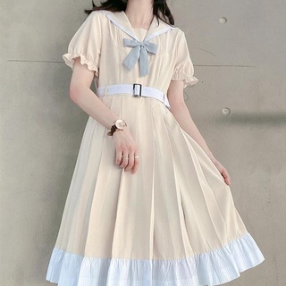 Đầm Chữ A Tay Phồng Cổ Búp Bê Thắt Nơ Kiểu Nhật Bản Dễ Thương Cho Học Sinh