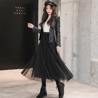 Chân Váy Lưới Dáng Chữ A Dài Qua Gối Thời Trang Mùa Đông Cho Nữ