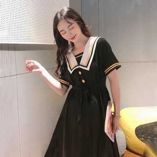 Đầm Chữ A Tay Ngắn Cổ Thủy Thủ Dáng Rộng Phong Cách Hàn Quốc Nhật Bản Cho Nữ