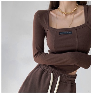 Áo Thun Lửng Tay Dài Thiết Kế Hình Xương Cá Phong Cách Mỹ Quyến Rũ Dành Cho Nữ