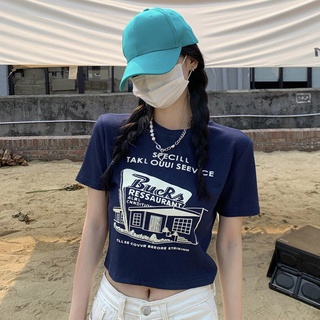 Áo Thun Ngắn Tay Lưng Cao Phong Cách Retro Mỹ Thời Trang Mùa Hè 2022 Mới Cho Nữ