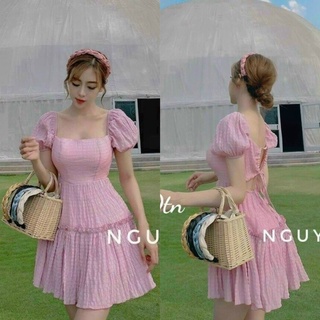 Đầm Xốp Tay Phồng tùng xòe nhún tầng sang chảnh đi chơi dự tiệc
