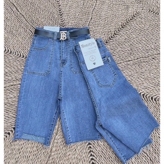 QUẦN SHORT JEANS RÁCH TÚI SAU PHỐI TRẮNG KÈM DÂY NỊT XÍCH WANG