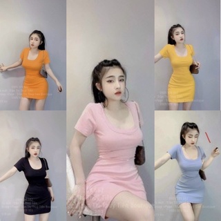 Đầm Body Tay Ngắn Cổ Yếm Viền Khoen Dáng Ngắn