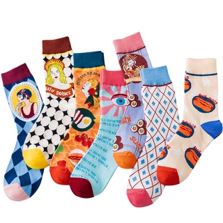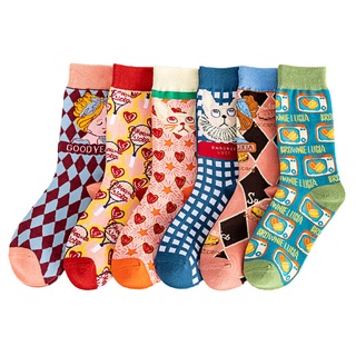 Vớ WAFNHA D183 cotton cổ vừa in họa tiết hoạt hình dễ thương thời trang cho nữ