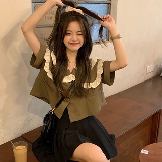 Áo Sơ Mi Chiffon Ngắn Tay Hai Lớp Cổ Búp Bê Thiết Kế Mới Thời Trang Mùa Hè Dành Cho Nữ