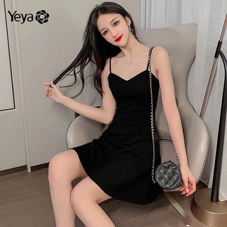 Đầm hai dây YEYA cổ chữ V màu trơn phong cách thời trang Hàn Quốc cho nữ