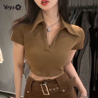 Áo thun YEYA dáng ôm lưng cao phong cách thời trang retro Mỹ dành cho nữ